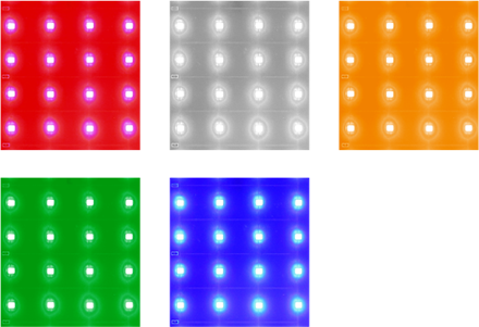 発光色はブルー・オレンジ・ホワイト・グリーン・レッドの5色を用意。使用用途に応じた自由な取り付けと光の演出で高い表現力を実現しています。