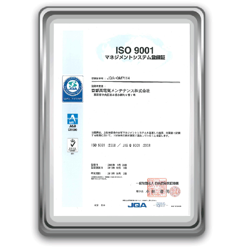 顧客の信頼とご満足を得る品質を提供するため、継続的に更なる業務改善を目指す事を品質方針としています。具体的には各業務において改善の目標を設定、現場社内検査体制の充実、ISO9001認証の取得、品質管理委員会の開催などにより、この方針の実現を目指しています。品質管理には、技術力向上が不可欠であることから、定期的に技術講習会を実施し、受変電設備、照明設備、通信設備、交通管制設備などの最新技術の習得に努めています。